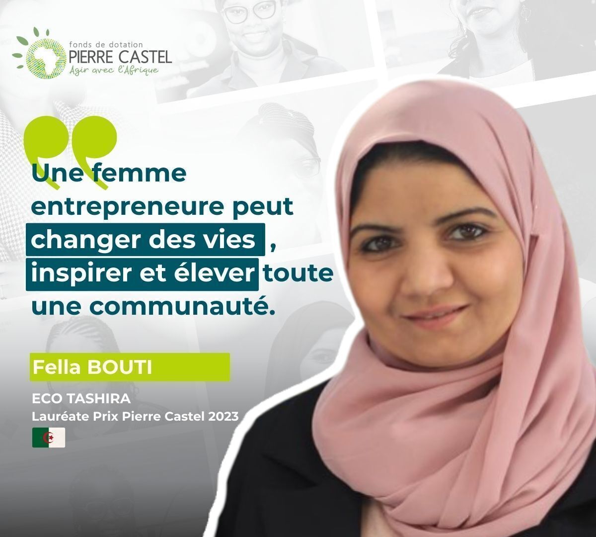 Pour ce quatrième portrait, cap sur l’Algérie avec Fella BOUTI, fondatrice de Eco Tashira. À travers son initiative, elle développe des solutions de végétalisation urbaine qui visent à réintroduire davantage de nature dans les espaces construits, tout en valorisant des résidus agricoles.